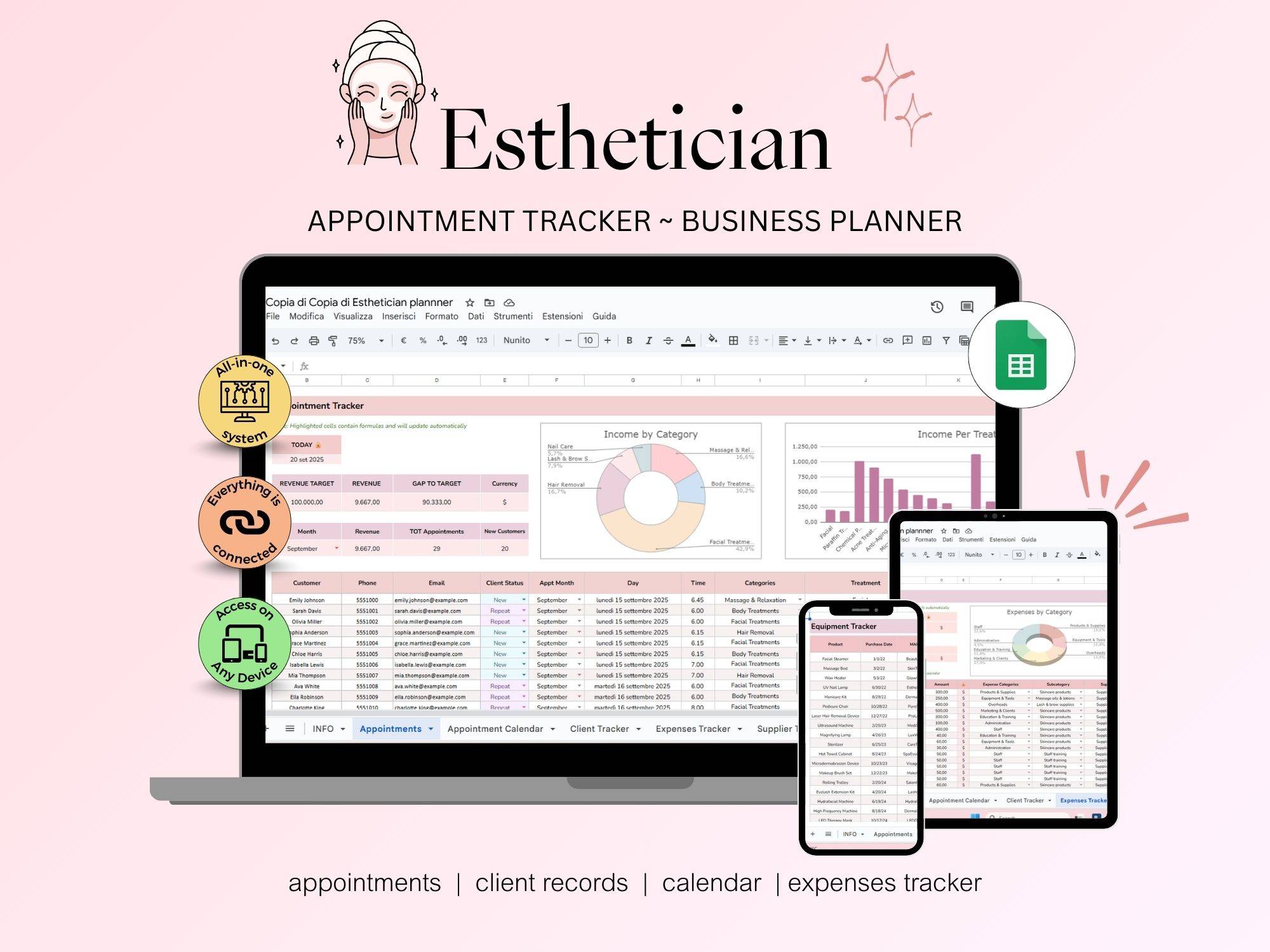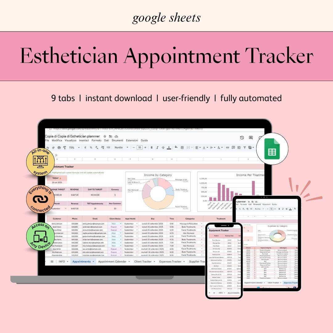 ✨ The Esthetician Appointment Tracker Google Sheets ✨