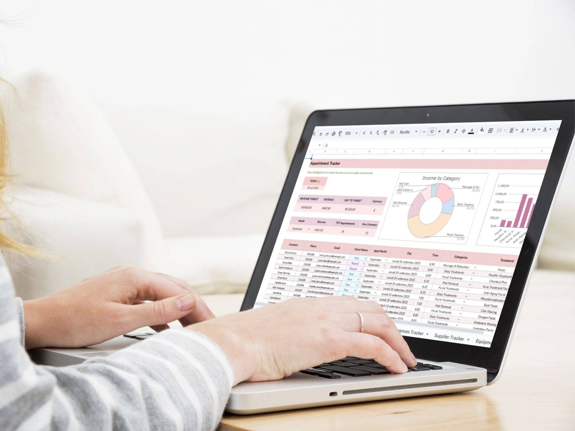 Yay! After you enter your details we’ll email you the Esthetician Appointment Tracker right away. You’ll be able to easily customise it to fit your salon — add appointments, track expenses, update inventory, and personalise categories without needing any special software or technical skills. Everything is simple, flexible, and ready for you to make it your own.