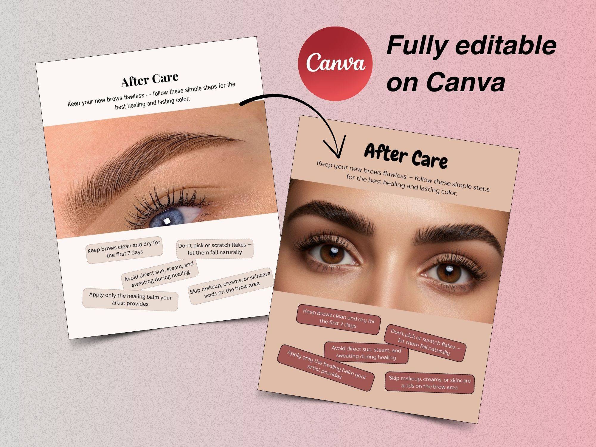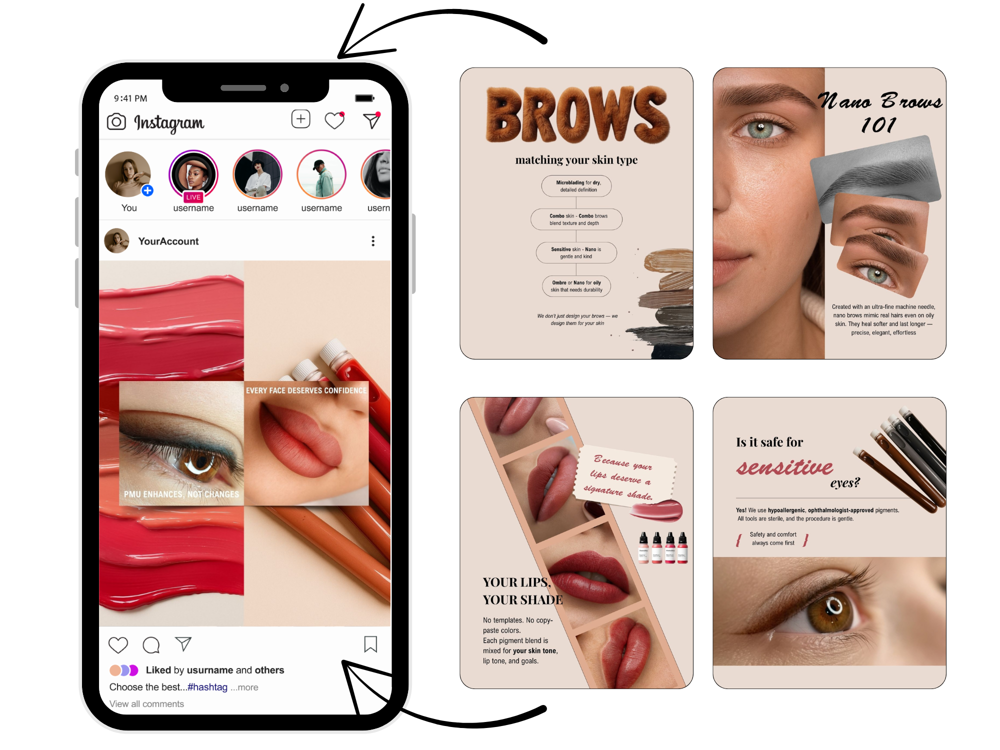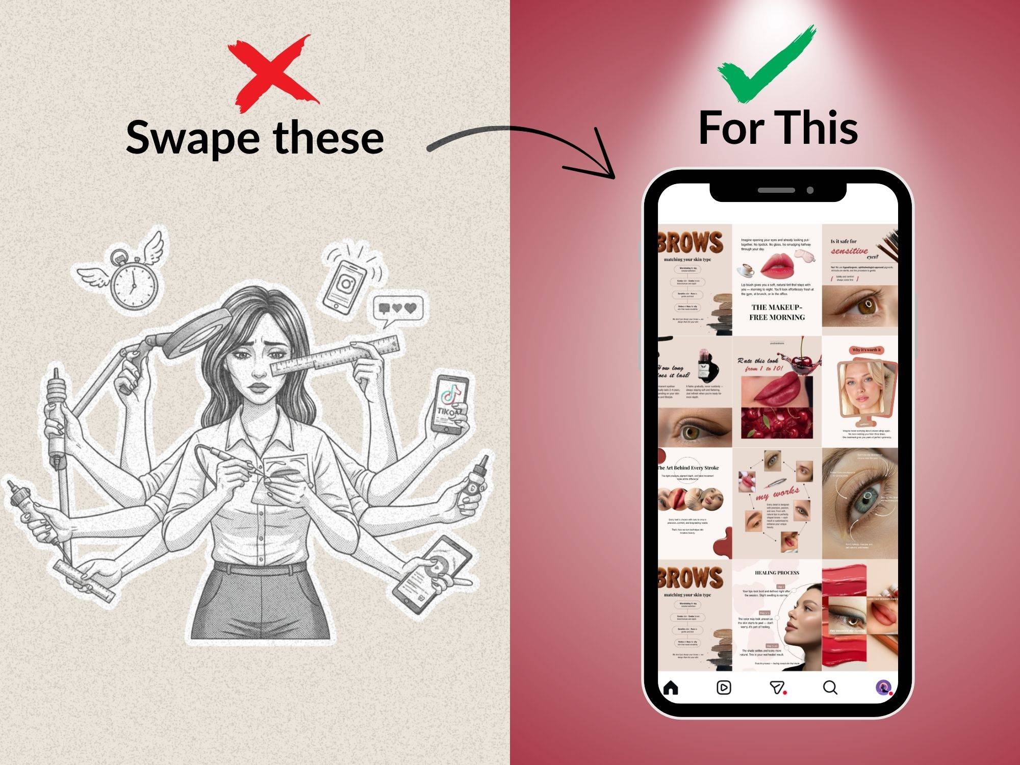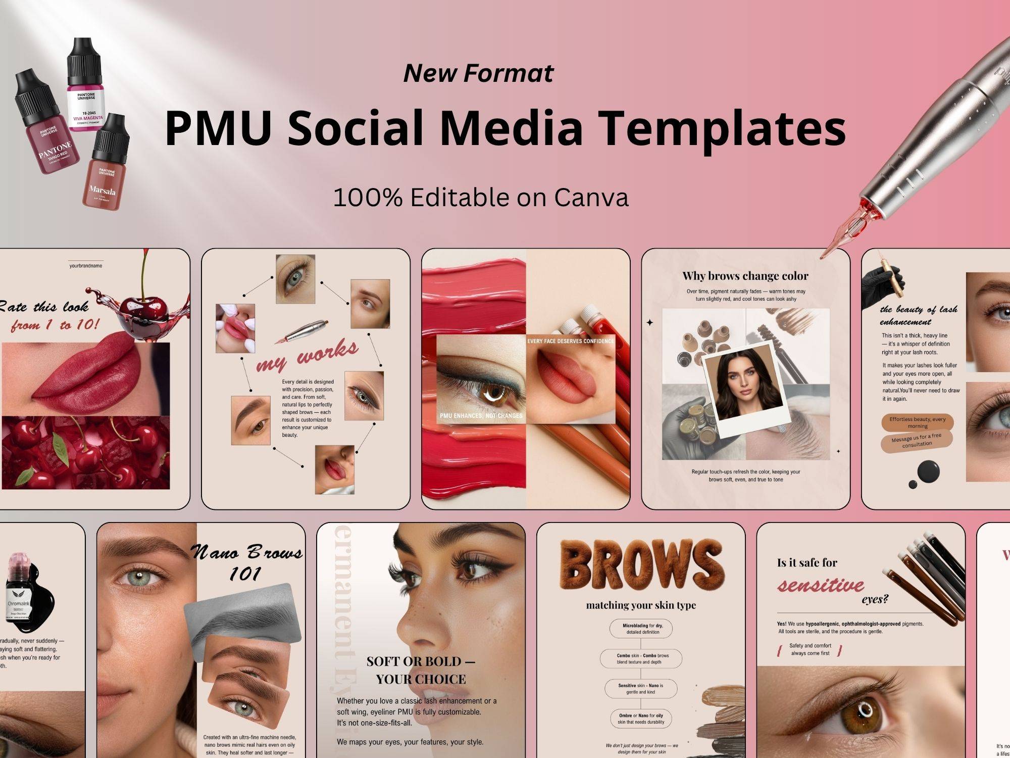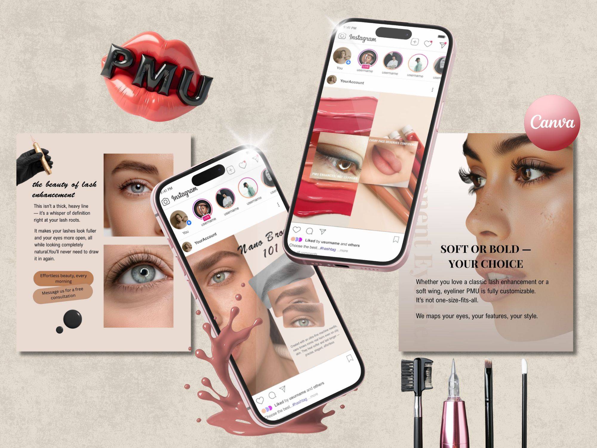 You open your phone. You scroll through your PMU Templates Bundle, pick one that fits your vibe, swap in a photo of your latest set, and hit “share.”