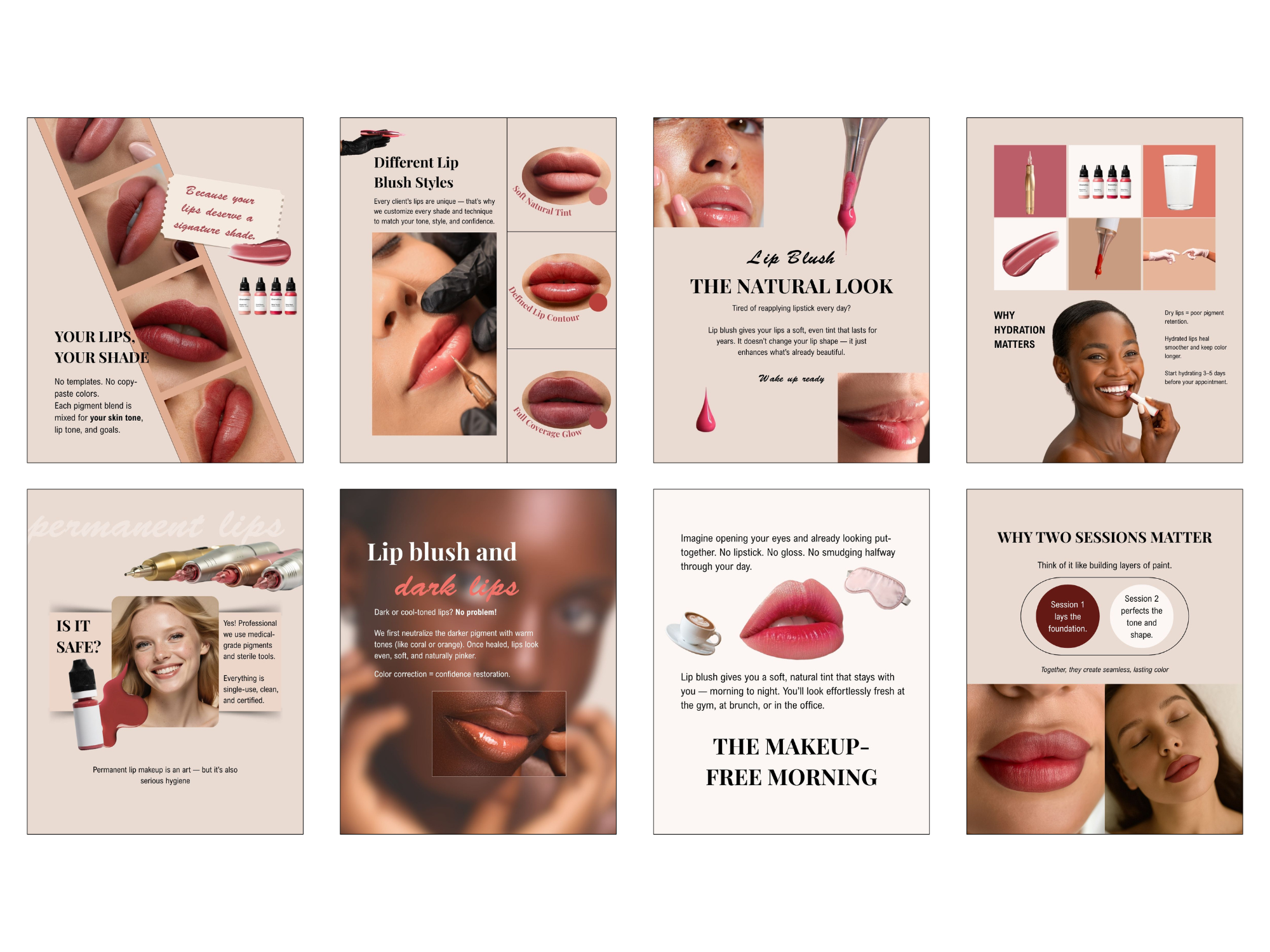 Includes healing tips, color education, and promotional posts designed to highlight your expertise and attract dream lip clients.