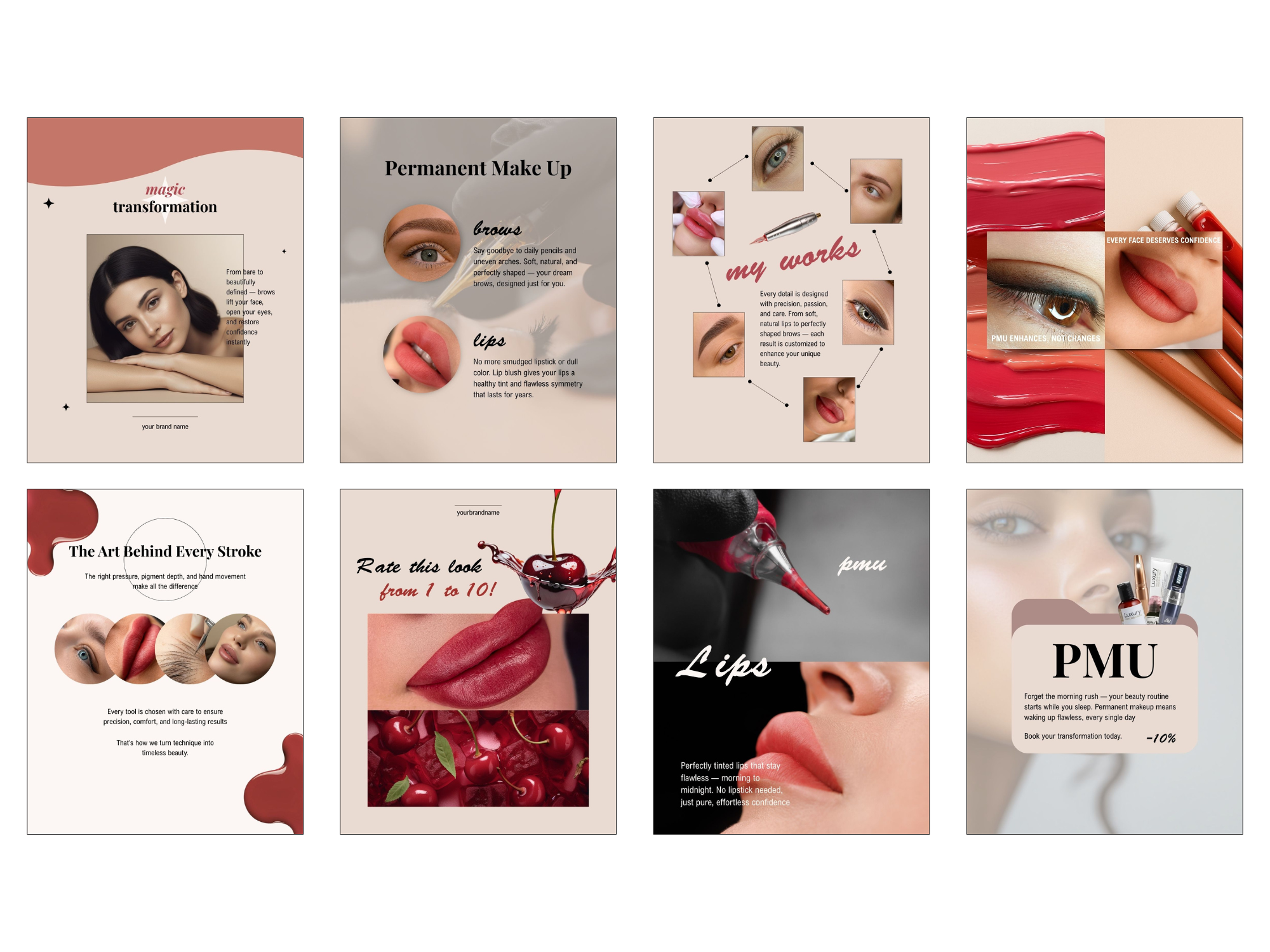 Show off your lip artistry with stunning, feminine, and informative templates.